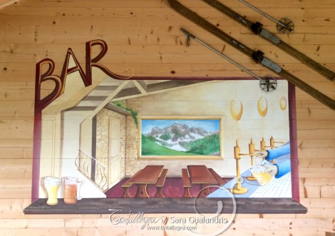 Sulle pareti esterne dello chalet lato strada potrai notare una bella finestra che guarda dentro e oltre quel magnifico luogo! Come non fermarsi a bere una birretta?!